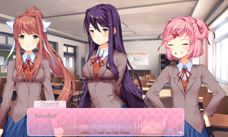 DDLC has MC (the name given by the community) who is the person that you take control over. He’s bland and reacts like any other anime character. What DDLC really does differently is it indulges you in that fantasy by not really giving you much about MC himself.