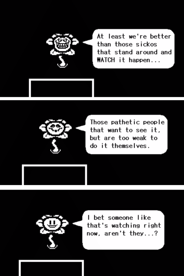 There are plenty of other ways that Undertale breaks through the fourth wall that are a lot smaller. Your screen shakes when Chara strikes you down. The window closes when Flowey kills you. The game glitches out once Flowey has control.